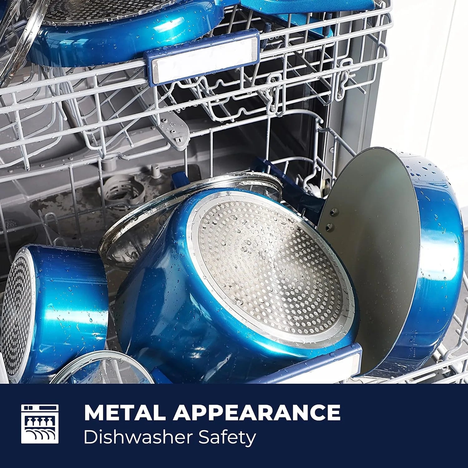 - Cool Touch Handle Grips: The professional pot set features ergonomic cool-touch handles, ensuring comfortable and healthy cooking. Shiny metallic pan set offers a stylish modern design. The handles are riveted for strength and endurance.