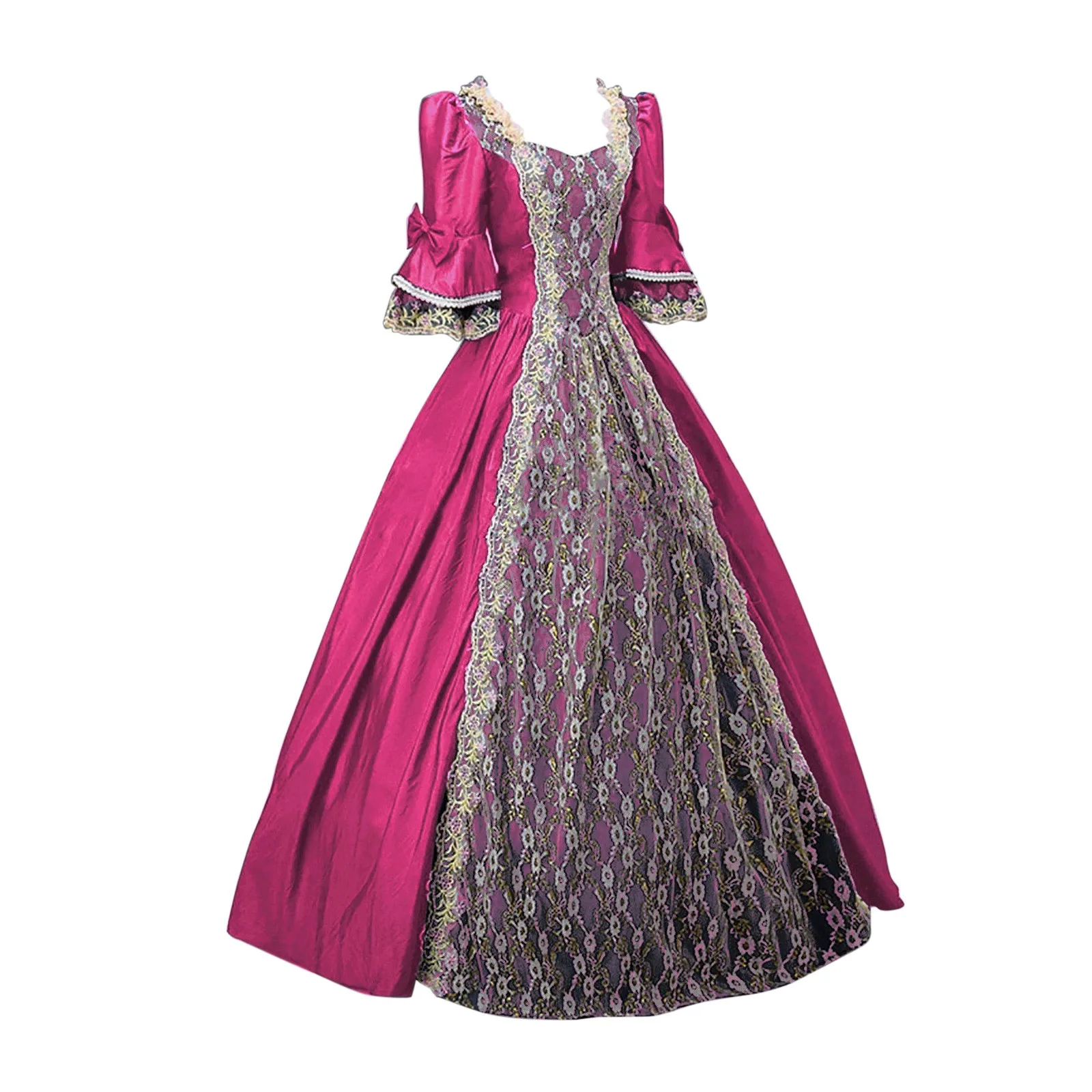 18th Century Medieval Dress Women High Waist Half Sleeve Ball Gown Princess Lace Patchwork Satin Dress Queen Renaissance Costume