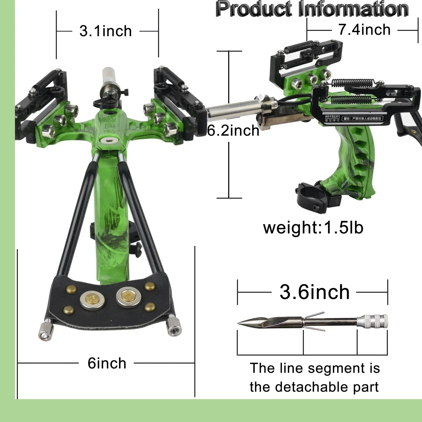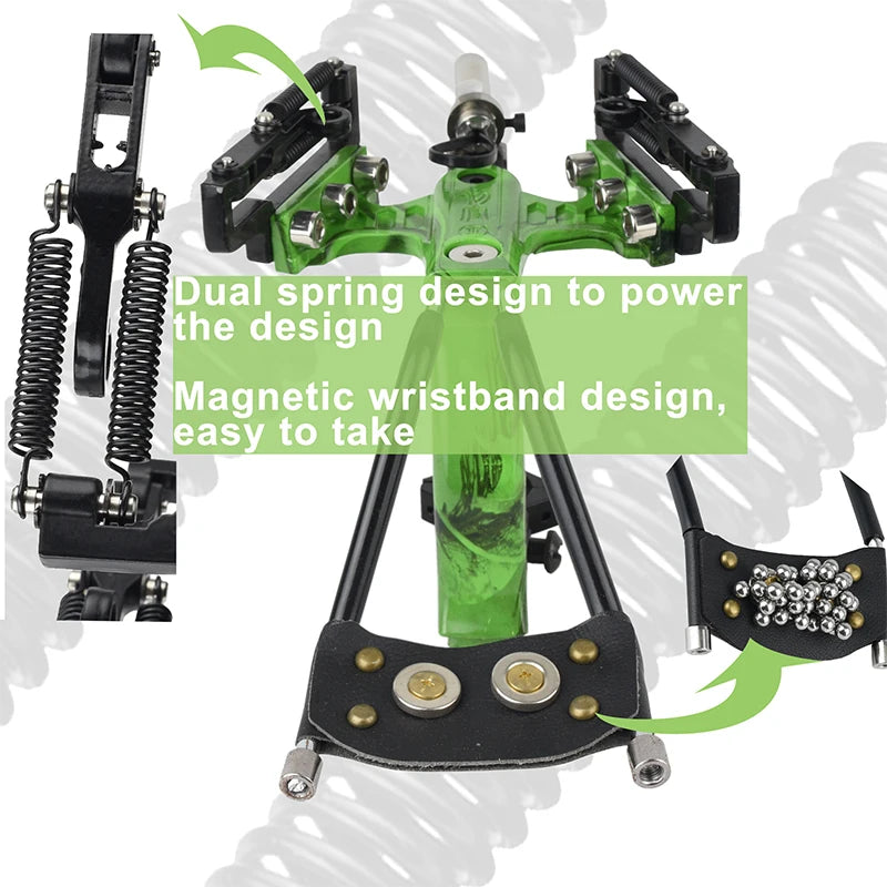 1. This product is a professional hunting and shooting equipment. Its frame is made of stainless steel, and the laser aiming device is made of aluminum alloy. The selected materials and exquisite craftsmanship ensure the reliability and durability of this slingshot.