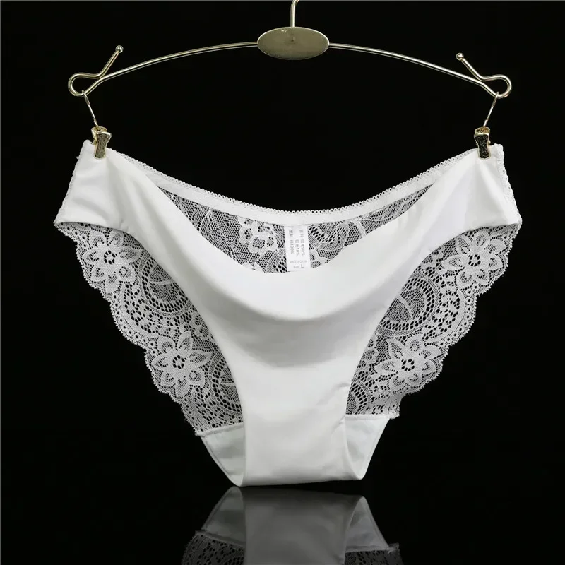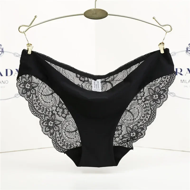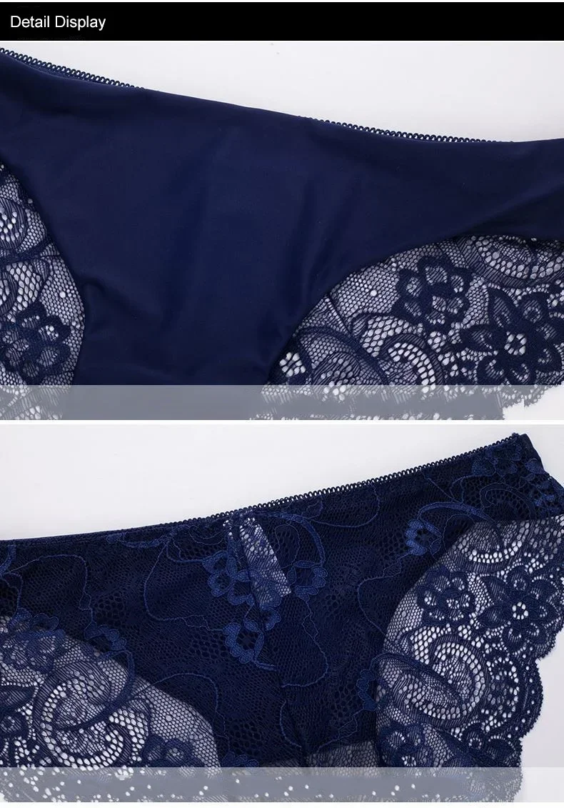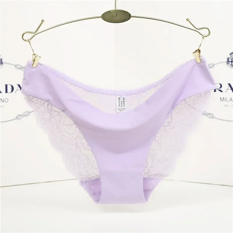 Sexy Lace Briefs For Women Mid Waist Stretchy Breathable Sleamless Ice Silk Intimates Panties Lingerie Female Underwear 2 Piece