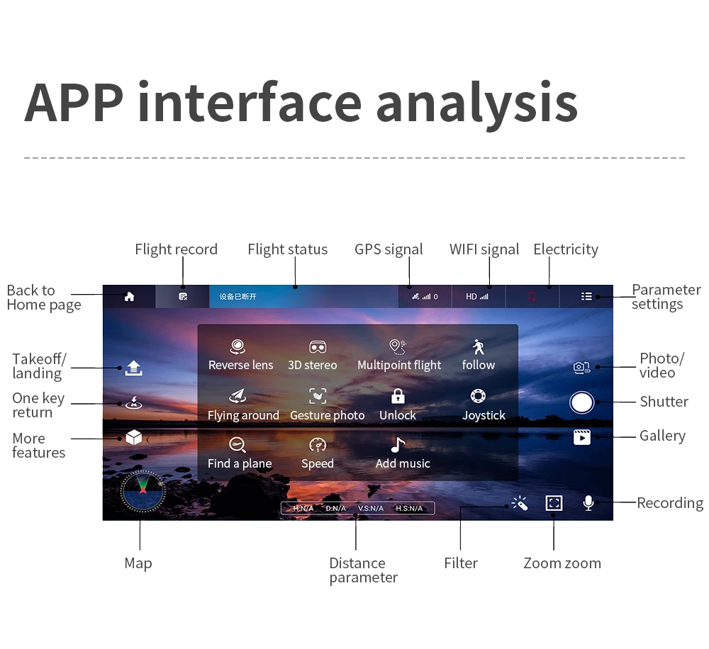 1. GPS returns to the take-off point with one key, low power return, no signal.